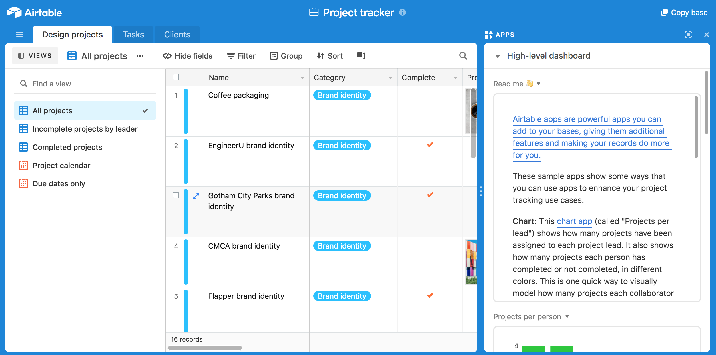 In all three, you can typically view the projects on a “board” or as a list.